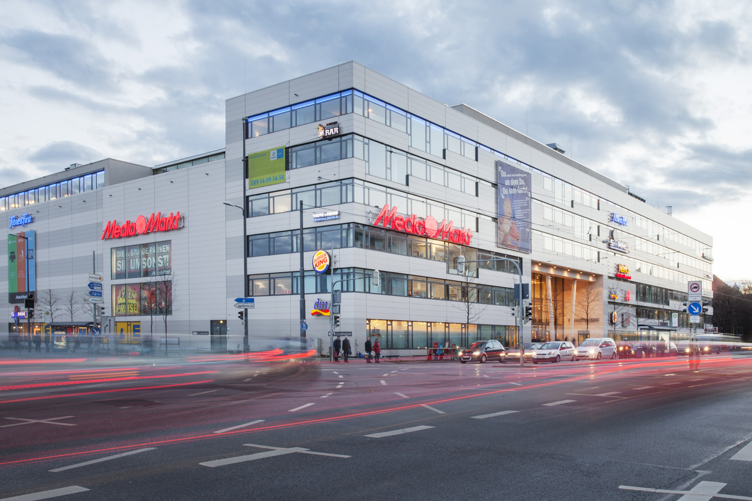 « das Einstein » est un centre commercial à Munich, couvrant une superficie d'environ 36 000 m². Les visiteurs disposent d'un parking souterrain de 292 places et d'un parking à étages de 145 places. Les deux aires sont exploitées grâce au système numérique de gestion des places de Peter Park.